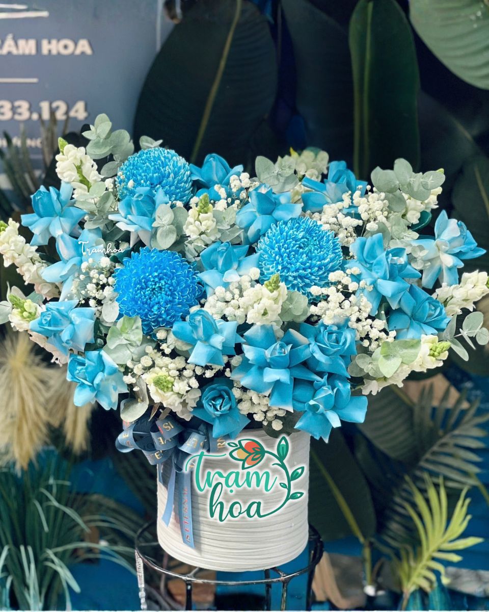 Giỏ hoa Biển Đợi H144 là lựa chọn hoàn hảo để gửi tặng phái mạnh nhân dịp sinh nhật. Với tông màu xanh chủ đạo kết hợp cùng sắc trắng tinh tế, giỏ hoa mang đến cảm giác mạnh mẽ, thanh lịch và đầy cuốn hút. Lấy cảm hứng từ hình ảnh đại dương bao la, thiết kế này không chỉ thể hiện sự tôn trọng mà còn gửi gắm những lời chúc tốt đẹp về một hành trình sống đầy thành công và vững vàng.