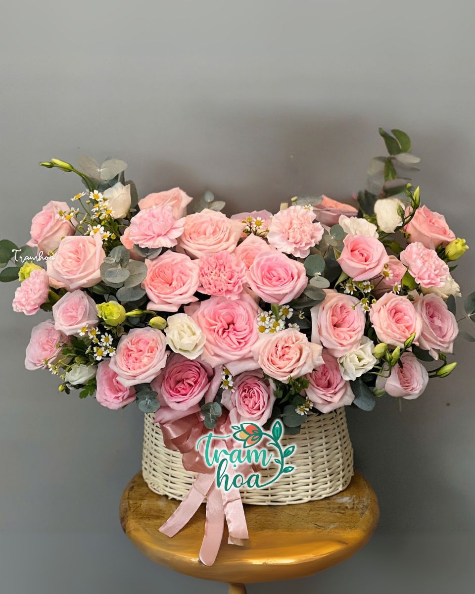 Giỏ Hoa Xinh G063 mang đến vẻ đẹp hài hòa giữa hoa hồng ohara dịu dàng và cẩm chướng hồng, tạo nên tổng thể vừa nổi bật, vừa tinh tế. Được thiết kế trong chiếc giỏ gỗ xinh xắn, sản phẩm này là món quà đầy ý nghĩa dành cho những người bạn yêu thương.